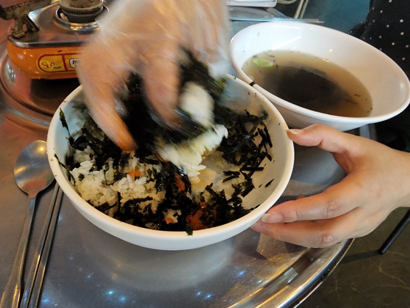 손이 보이지 않을 정도로 빠르게 슥슥 뭉쳐서 주먹밥을 만들어 줍니다